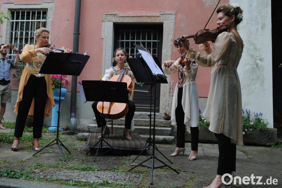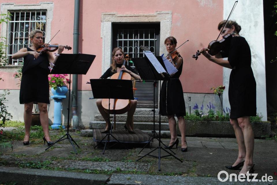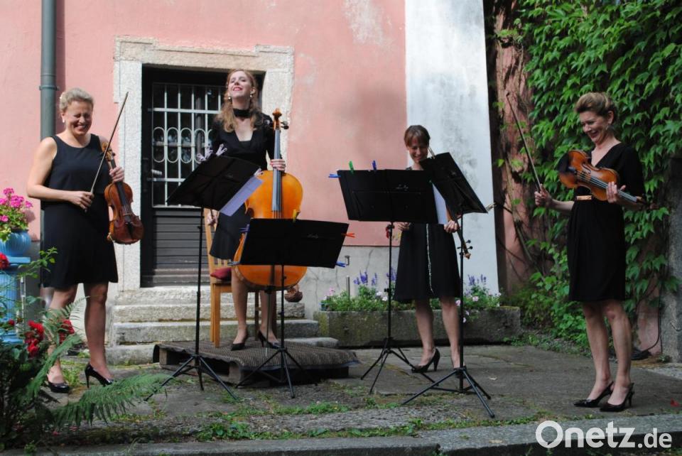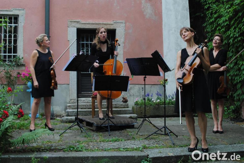 Im Schatten des großen Nußbaumes mitten im Garten des alten Muttone-Pfarrhofs begrüßte Festivalleiterin Rita Kielhorn die Musikliebhaber. Und kündigte die „Ladystrings“ an, die beweisen wollten, dass die Musik Mozarts durchaus mit aktueller Popmusik kombinierbar ist. „Mozart war wohl selbst ein Popmusiker seiner Zeit, mit seinen Skandalen ebenso wie mit seinem frühen Tod“ leitete die Hausherrin über zum ersten Stück. „And now: Mozart!“ Hingebungsvoll spielten die Ladystrings, – Charlotte Balle und Lisa Barry (erste und zweite Violine), Dorothea Galler (Viola) und Maria Friedrich (Cello) – „Voi che sapete“ aus der Hochzeit des Figaro. „Für uns sind Mozarts Werke Inbegriff reiner Schönheit, vollkommene Harmonie“, bestätigte Lisa Barry. Um jedoch gleich zuzugeben, dass sie die Mendelssohn-Werke über alles liebt. Obwohl nie klar sei, ob die Komposition von Felix stamme oder von seiner noch begabteren Schwester Fanny.