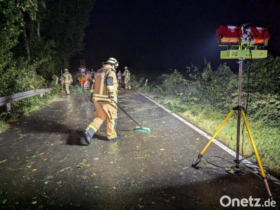 Das Einsatzfahrzeug der Feuerwehr Wolfersdorf wurde laut Kreisbrandinspektion von einem umfallenden