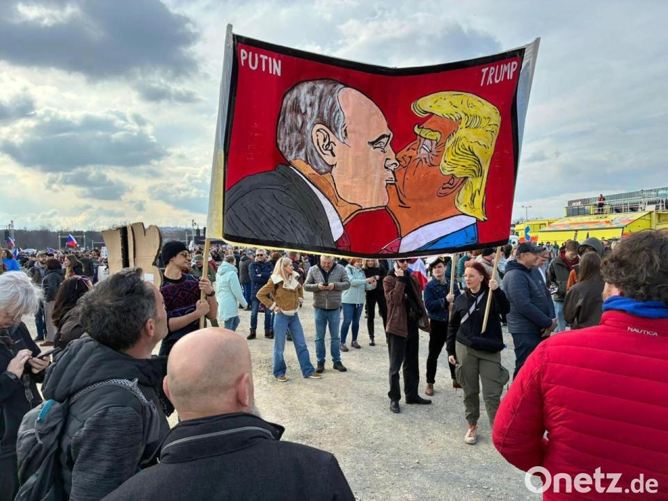 Die Demonstranten hielten zahlreiche tschechische und ukrainische Fahnen sowie die Europaflagge hoch. Auf einem gemalten Bild waren US-Präsident Donald Trump und der russische Präsident Wladimir Putin stilisiert dargestellt, wie sie sich küssen. Polizei und Rettungsdienst waren mit einer größeren Zahl von Kräften vor Ort. Es kam zu Verkehrsbehinderungen.