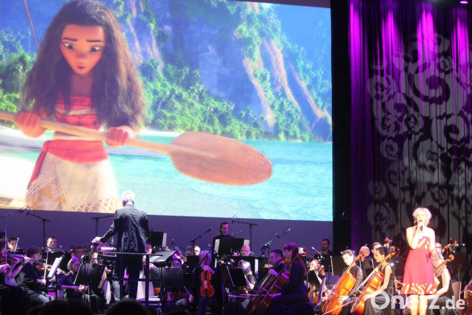 Glänzende Orchestermusik, gute bis sehr gute Gesangssolisten und Ausschnitte aus bekannten Disneyfilmen auf der großen Leinwand als Bühnenbild prägen das Programm. Das Publikum wird mitgenommen auf eine abenteuerliche Reise in zeitlose und aktuelle Disney-Welten, bereitet wird ein Rausch der Sinne. So geht es nach Polynesien zur Stammeshäuptlings-Tochter „Vaiana“, ins alte Griechenland zum Helden „Hercules“, zur Indianerfrau „Pocahontas“ und zu den „Bärenbrüdern“ am Ende der Eiszeit in Nordamerika.