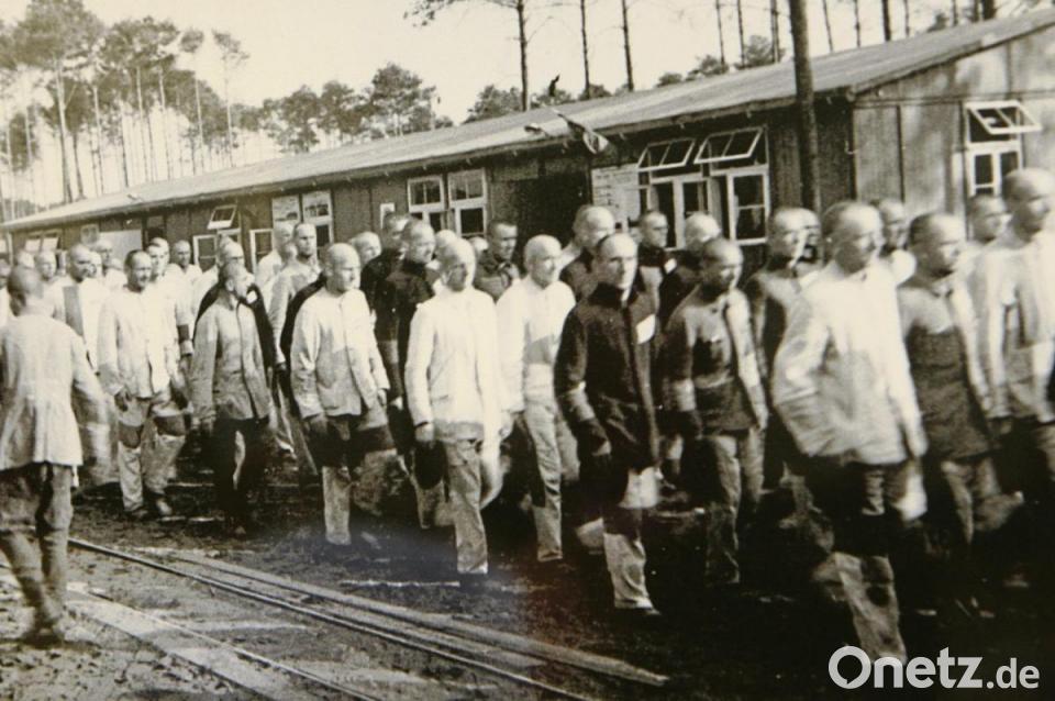 Gebrüll vor dem Abmarsch aus Sachsenhausen. Die Häftlinge müssen sich wie zum Appell in großen Gruppen, vielleicht 500 Elendsgestalten mit Decken und Essgeschirr aufstellen. "Durchzählen!" Schani und sein neuer Freund Freddy Glasel bleiben zusammen. Keiner weiß, wohin es gehen soll. Sie sind schwach, krank, schleppen sich auf Holzschuhen, mit denen man nicht laufen kann, vorwärts.