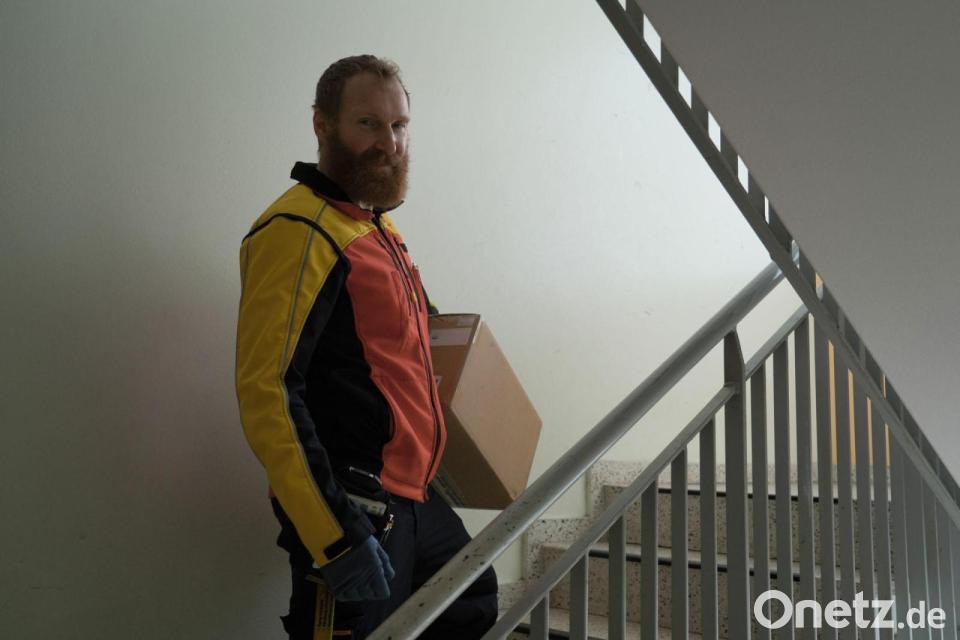 Die Sendungsmengen werden gerade vor Weihnachten „immer schlimmer“, sagt der 45-Jährige. Pro Tag fährt er für die Deutsche Post DHL mehr als 200 Pakete aus, zu anderen Jahreszeiten sind es eher 150. Besonders belastend seien Mehrfamilienhäuser ohne Aufzug. „Das Phänomen ist tatsächlich immer, dass die meisten, die viel bestellen, immer oben wohnen.“