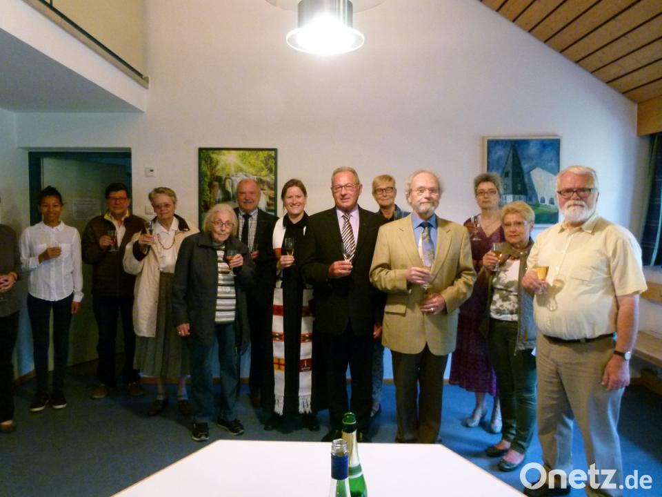 Ihren Aufruf "Herr, segne diese Glocke" verband Utz mit dem Wunsch, dass diese Mutlose aufrichten und Glückliche erfreuen möge. Beim Anstoßen auf die neue Steuerung der Glockenuhr mit den Bürgermeistern Peter Lehr und Klaus Lehl sowie Gemeindemitgliedern trug Vertrauensmann Walter Trötsch spontan einen "Richtspruch" vor: "Möge die Glocke nie bocken und stets zum Gottesdienste locken."