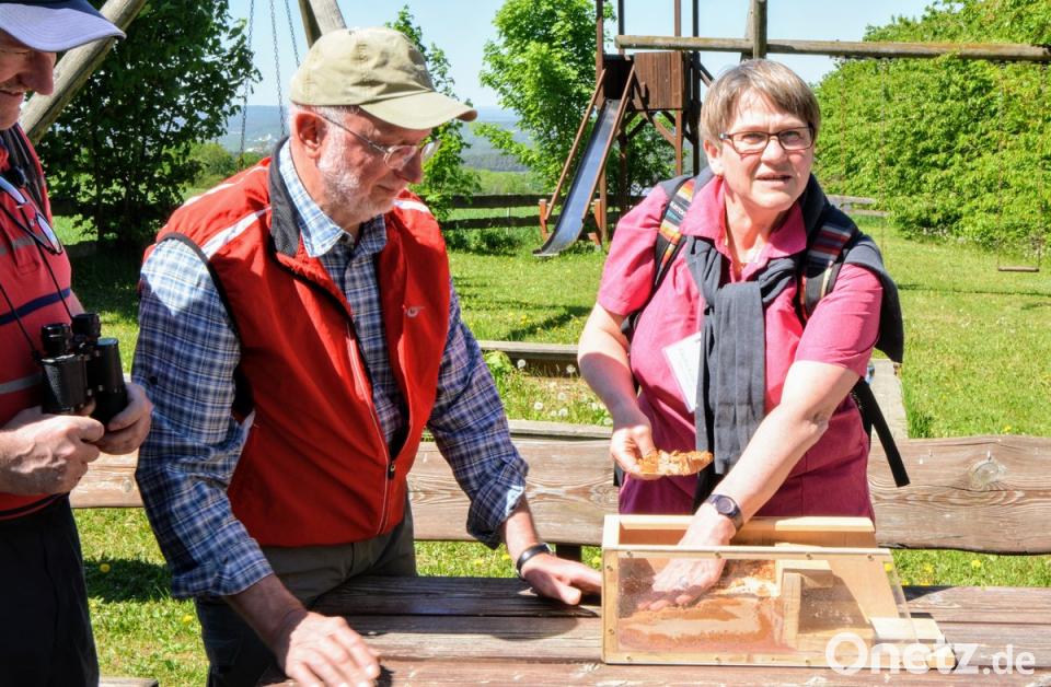 Geoparkrangerin Cäcilia Kastl-Meier und Josef Kohl (OWV Massenricht) verstanden es hervorragend, die Teilnehmer kurzweilig und anschaulich zu informieren. Einer der Höhepunkte war die Besichtigung eines ehemaligen Steinbruchs. Hier wurden besonders harte Mühlsteine gefertigt, die in alle Länder Europas importiert wurden. 1893 wurde der letzte von insgesamt acht Steinbrüchen in der Gegend geschlossen.