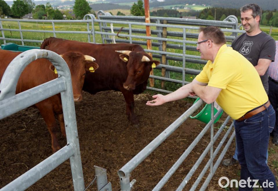 „Die Qualität des Fleisches kommt sehr gut an“, freut sich Christian Richter und auch Johann Lemberger, der für seine Küche ausgewählte Fleischqualität aus der Region sucht. Die Öko-Modellregion Steinwald war bei der Vermittlung behilflich und empfahl das Rote Höhenvieh von Wunschenberg.