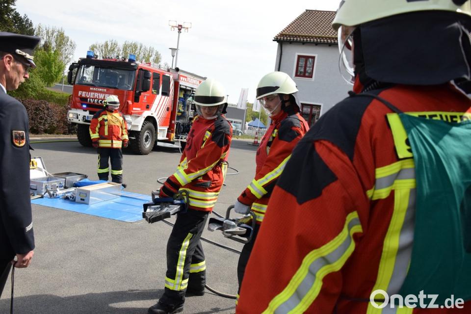 Bevor es zur Mannschaftsaufgabe, Vorgehen bei einem Verkehrsunfall mit eingeklemmter Person, ging, stellten sich die Aktiven den ausgelosten Truppaufgaben. Hierbei waren die Einsatzgrundsätze und die richtige Bedienung der Tauchpumpe, der Motorkettensäge, des Mehrzweckzugs und Trennschleifers, der hydraulischen Rettungsgeräte, Schaufeltrage sowie des Hebekissensystems gefragt. Ebenso Erste-Hilfe-Maßnahmen und die stabile Seitenlage.