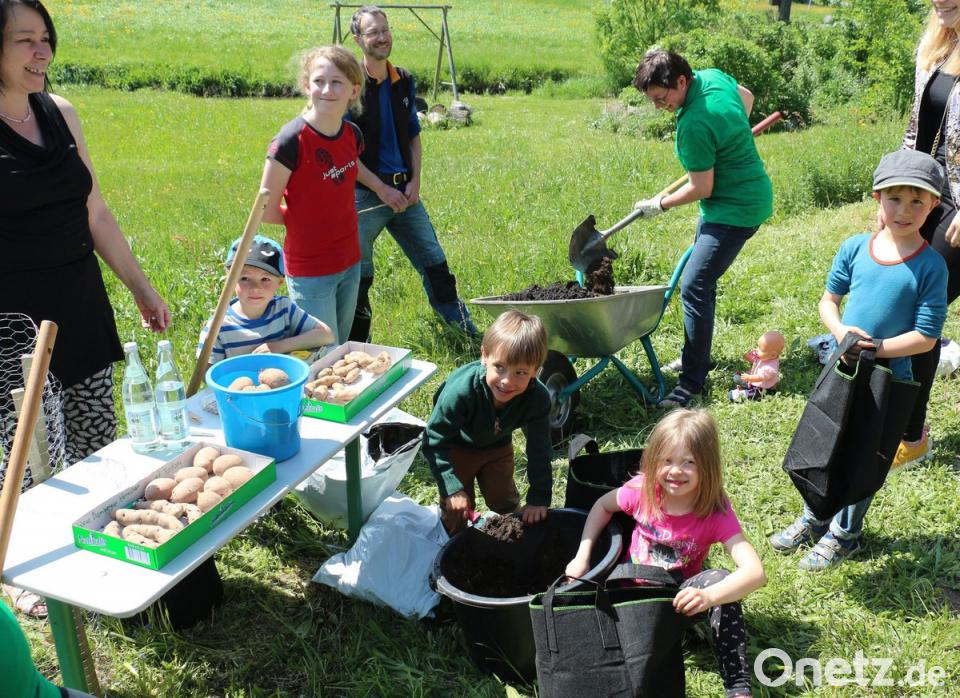 Die Petersiliengurus, die Kinder- und Jugendgruppe des Obst- und Gartenbauvereins (OGV) Kemnath, erhielten Kartoffeltaschen für zu Hause und bepflanzten ihr Gemüsebeet. Die Mädchen und Buben befüllten zunächst Stofftaschen mit Erde und pflanzten darin Kartoffeln. Zur Auswahl standen die vier Sorten Granola, Bamberger Hörnchen, blaue Bamberger Hörnchen und Red Fantasy. Das Jugendteam erklärte die Unterschiede beim Aussehen, beim Kochen und zeigte, wie sehr sich Kartoffeln in ihrem Inneren unterscheiden können.