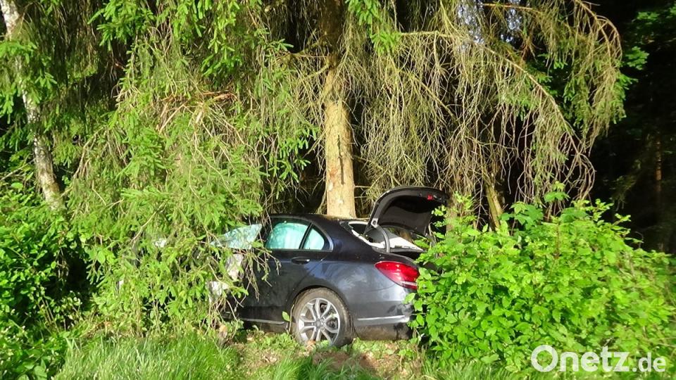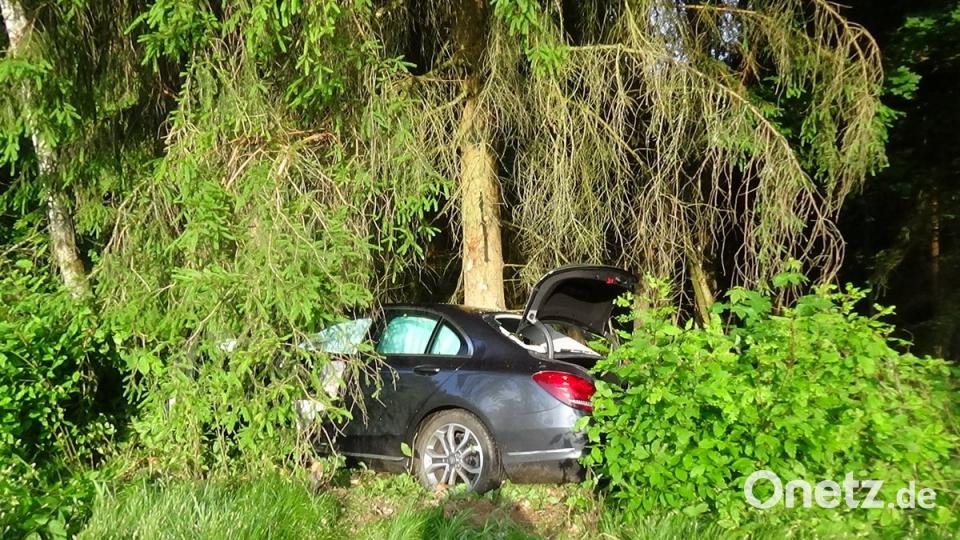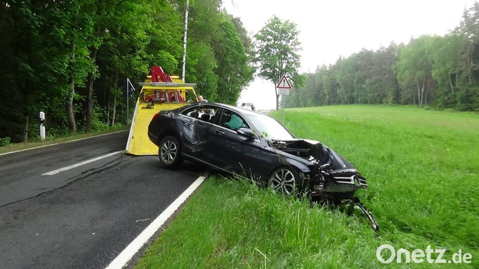 Am Mittwochmorgen gegen 07.20 Uhr ereignete sich auf der Staatsstraße 2120 zwischen Heinersreuth und Heinersberg bei Kirchenthumbach ein Verkehrsunfall. Ein Kleintransporter befuhr die Staatsstraße in Richtung Creussen, zwei weitere PKW folgten ihm. Nach einer Kuppe wollte das dritte Fahrzeug in der Schlange die beiden vorausfahrenden überholen. Als der Mercedes auf Höhe des Jeep war, wollte dieser ebenfalls zum Überholen ansetzten. Um einen Zusammenstoß zu vermeiden, lenkte der Mercedesfahrer sein Fahrzeug in die angrenzende Wiese. Nach einer etwa 250 Meter langen Rutschpartie auf dem nassen Gras krachte er gegen zwei Bäume. Der Mann aus dem Gemeindebereich Kirchenthumbach konnte seinen Firmenwagen selbstständig verlassen und wurde nach notärztlicher Behandlung ins Krankenhaus nach Pegnitz gebracht. Am teuren Mercedes entstand Totalschaden im fünfstelligen Bereich. Die Staatsstraße musste für fast zwei Stunden halbseitig gesperrt werde, da sich die Bergung des Mercedes als schwieriger erwies. Am Unfallort war zur Absicherung und Verkehrslenkung die Feuerwehr aus Heinersreuth.