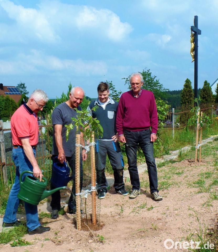 Sie stießen bei Pfarrer Varghese Puthenchira und Kirchenpfleger Leonhard Steinsdörfer auf offene Ohren. Der Wunsch wurde gleich umgesetzt. Benjamin Hagler erledigte die Erdarbeiten, das Blütensaatgut und die - vorerst mal - drei Bäumchen spendete Josef Bertelshofer. Er hat die fünf Jahre alten Stämmchen selbst aus Samen gezogen.