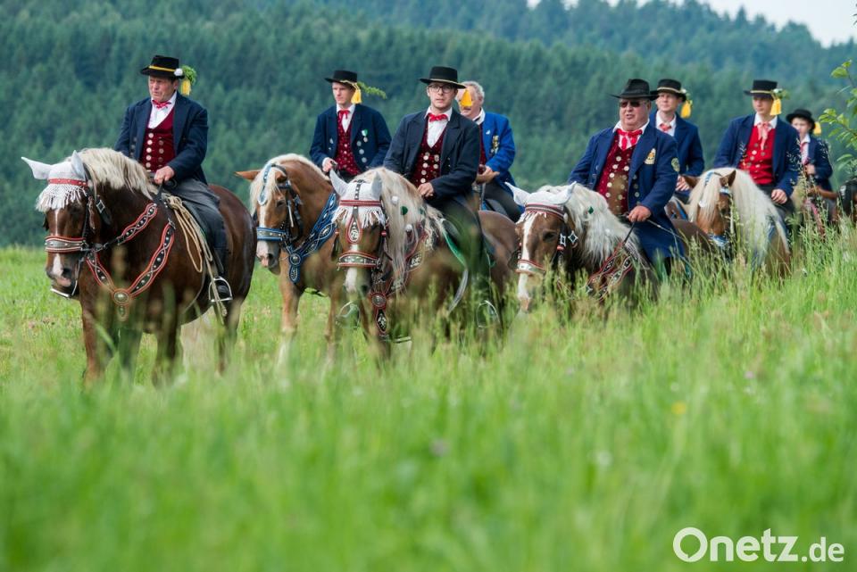 Bad Kötzting. Seit jeher nehmen nur "Männerleut" an dem Ritt teil, die Frauen sind für das Fest und für das Schmücken der Pferde mit Papierrosen zuständig.