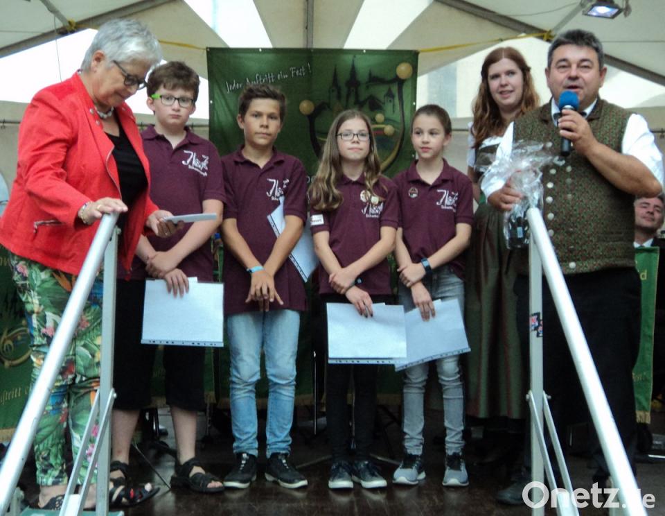 Kinder der Musikkapelle Schwarzenfeld haben sich in Theorie, das heißt im Grundwissen (musikalische Begriffe wie Noten, und Tonleiter), und im praktischen Teil, also der Fähigkeit auf dem Instrument, bewiesen und überzeugt. Das Abzeichen in Bronze mit der dazu gehörenden Urkunde wurde durch die Jugendbetreuerin des Nordbayerischen Musikbunds, Kristina Betz, dem Vorsitzenden des Musikvereins, Dionys Böckl, und Fördervereinsvorsitzender Inge Bauer-Joswig überreicht an Max Bauer, Eva Buron, Kim Reisner, Klarinette; Mia Matzke und Samuel Lindner, Trompete; Michael Bronold, Tenorhorn, und Anna Kochherr, Posaune.