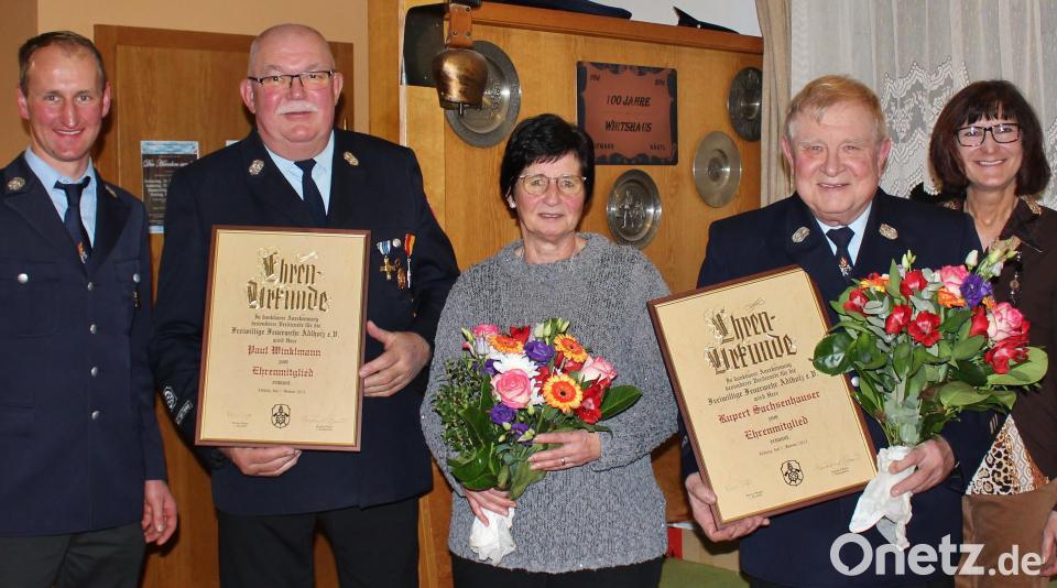 Die Feuerwehr Adlholz hat bei ihrem traditionellen Kameradschaftsabend in der Gastwirtschaft Härtl in Oberschalkenbach die früheren Vorsitzenden Rupert Sachsenhauser und Paul Winklmann zu Ehrenmitgliedern ernannt. Voraus ging ein Vorabendgottesdienst mit Vilsecks Stadtpfarrer Pater Robin Xavier in der Kreuzbergkirche, in dem die Feuerwehr ihrer Verstorbenen gedachte.