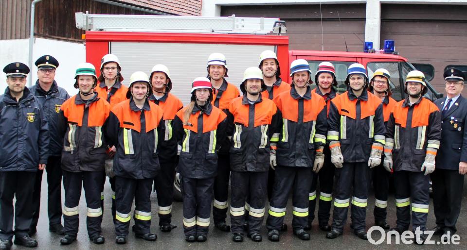 Einer Leistungsprüfung stellen sich Aktive der Feuerwehr Adlholz (von links): Kreisbrandmeister Michael Iberer, Kreisbrandinspektor Christof Strobl, Gruppenführer Michael Götz, Benedikt Wismet, Klaus Meiler, Karl Graf, Nadine Winklmann, Maschinist Christian Winklmann, Peter Ebensberger, Matthias Köstler, Florian Siegler, Matthias Siegler, Manuel Heindl, Daniel Weiß, Markus Kilp und Kommandant Reinhard Bauer.