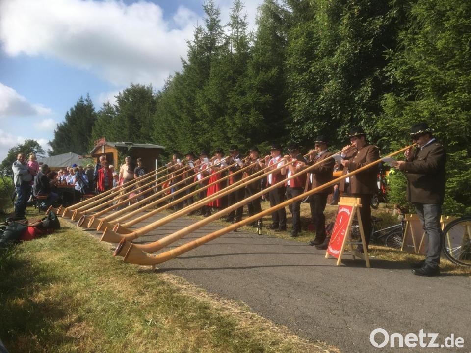 Der Höhepunkt am Nachmittag war der Auftritt der Großkonreuther Alphornbläser. Sie legten auf einer kleinen Anhöhe einen beeindruckenden Auftritt hin. Dafür gab es sehr viel Applaus. Ein weiteres Glanzlicht gab es für die Kinder, die mit einem Laser-Biathlongewehr schießen durften. Fast alle anwesenden Buben und Mädchen und auch viele Erwachsene waren interessiert.