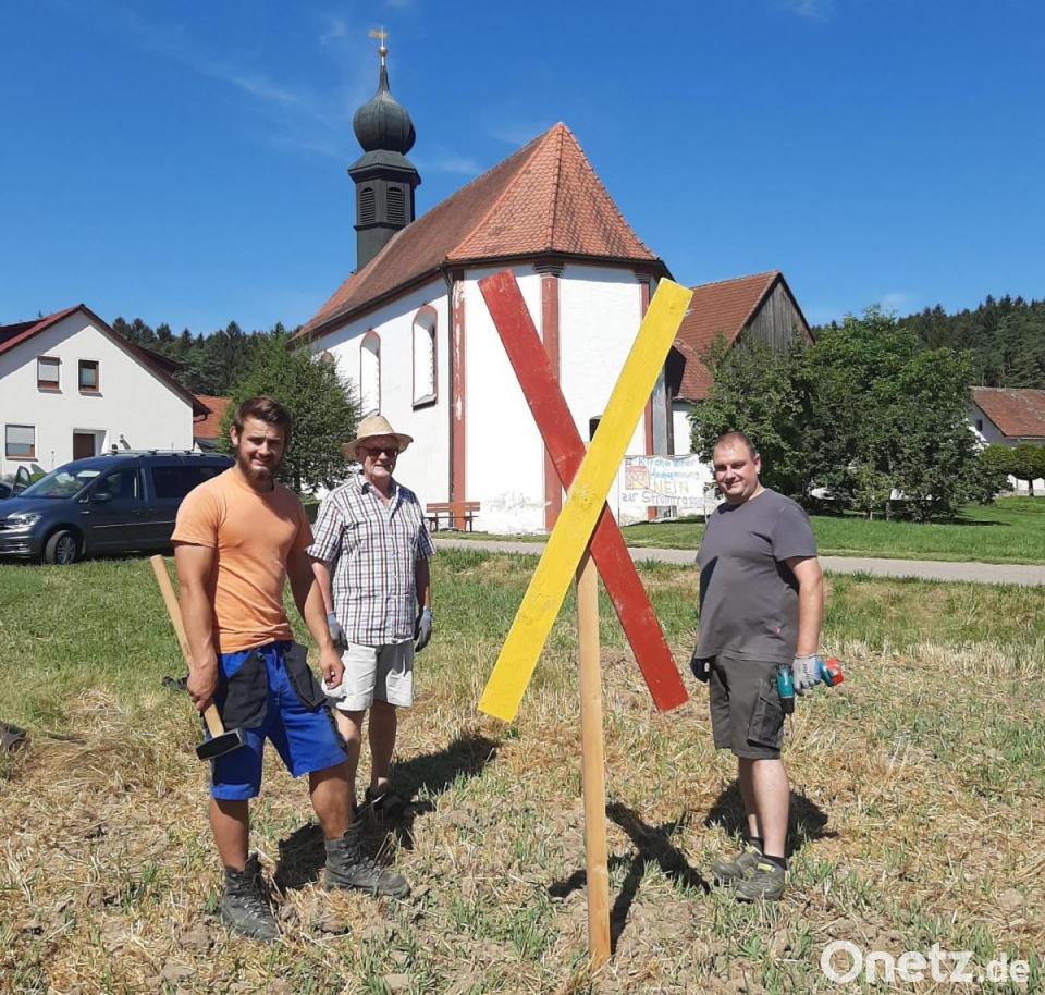 Die Mitglieder der vor kurzem in Aichazandt gegründeten Interessengruppe (IG) "Bahnstrom - so nicht!" organisierten das Anfertigen und Aufstellen von Andreaskreuzen entlang der geplanten Bahnstromtrasse zwischen Nürnberg und Schwandorf. Nach dem Vorbild einer vergleichbaren Aktion in Feucht entstand diese spontane Idee in der IG und fand dort breite Zustimmung. Die Hauptverantwortlichen zeigten sich überwältigt vom Tatendrang der Helfer. Ihre Verärgerung über die Trasse mitten durch die Natur, direkt an Häusern vorbei, sei spürbar geworden.