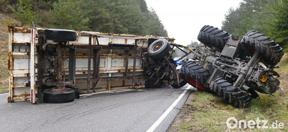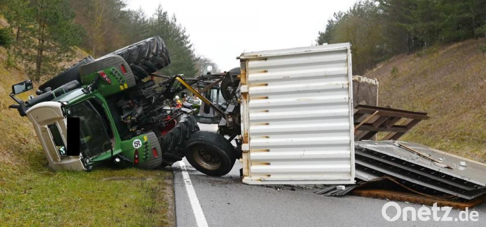 Knapp schert sie vor dem Traktor wieder ein, wie die Polizei Sulzbach-Rosenberg mitteilte. Der Fahrer der Zugmaschine geht voll in die Eisen und versucht, ins Bankett auszuweichen. Doch das enorme Gewicht des Anhängers bringt das Gespann ins Schleudern, bis der Fahrer schließlich die Kontrolle verliert: Traktor und Anhänger kippen zur linken Fahrzeugseite und blockieren die gesamte Fahrbahn. Daraufhin wurde die Staatsstraße gesperrt, die Feuerwehr Illschwang sorgte für eine Umleitung. Der Schaden an dem Gespann samt Ladung wird auf circa 50.000 Euro geschätzt.