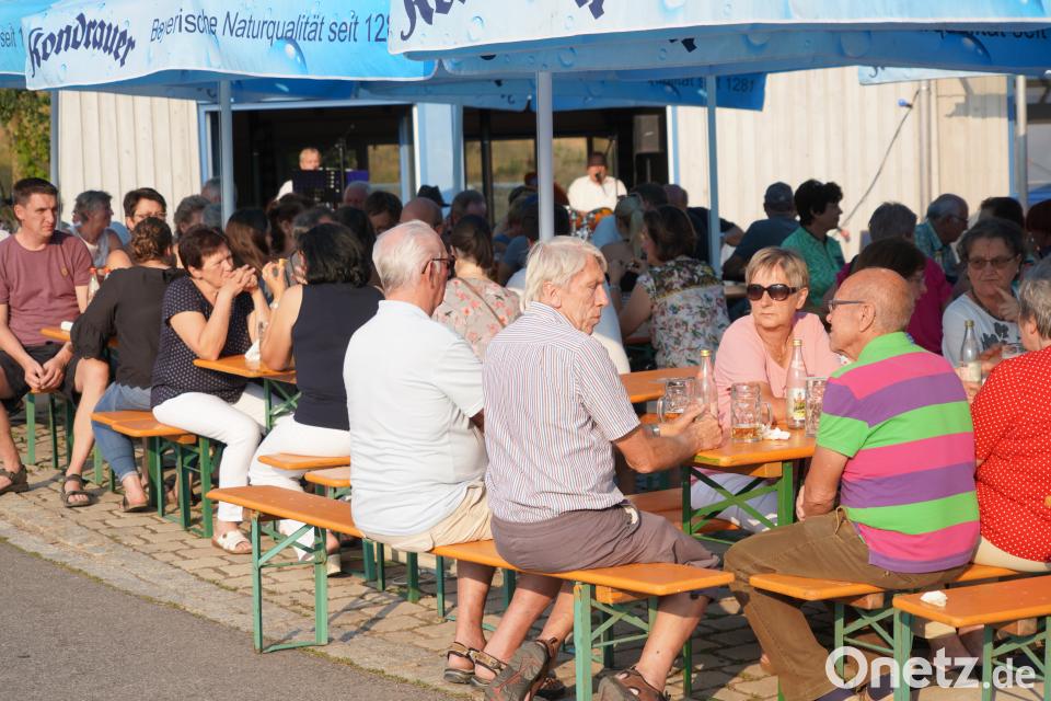 Kuchenspezialitäten in der Kaffeestube waren beliebt. Auf dem Dorfanger ließen es sich die Gäste unter Sonnenschirmen gut gehen, das Grill- und Schankteam verpflegte sie. Für Unterhaltung sorgte am Nachmittag das Fahrenberg-Duo Andreas Augustin und Kare Völkl - der "Haf-Kare" . Die Freiluftbar am Schankwagen lud zum kühlenden Verweilen.