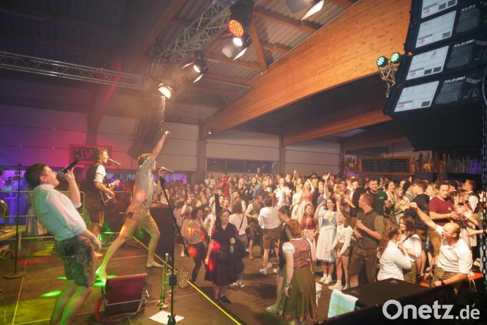 Nicht zu vergessen die Waldthurner Lokalmatadoren, die „Hulzstoussboum“ Andreas Holfelner, Maxi Steiner, Julian Bauer, Joni Kraus und Konstantin Stahl. Sie hatten nicht nur den Einmarsch und das Anstechen des ersten Fasses begleitet. Die fünf Musiker nahmen die vielen Besucher mit in den Abend und führten sie mit ihrer Stimmungsmusik wie „Hallo kleine Maus“ zum Hauptact des Abend, die von der Brass-Wiesn bekannte „Saustoimusi“ aus dem Ingolstädter Raum. Sie hielt nahtlos das Stimmungsbarometer aufrecht und nahm mit energiegeladenem, barfüßigem Tubapop im Zusammenspiel mit Bläsersätzen, E-Gitarre und Quetschn die Stimmung nahtlos auf und führte durch den Abend.