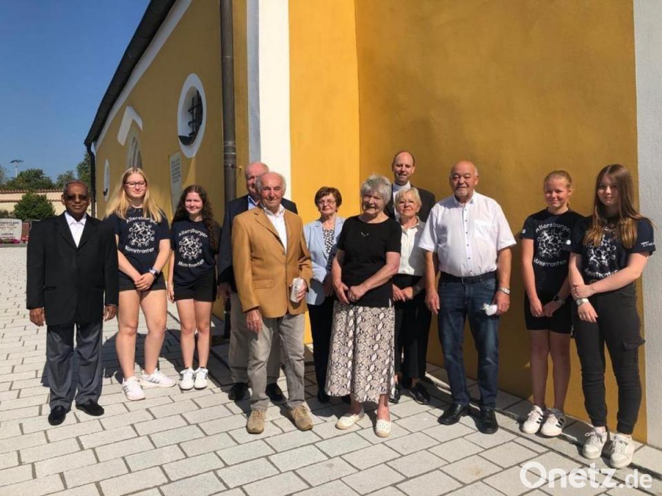Bei schönstem Spätsommerwetter feierten die Allersburger ihr Pfarrfest. Beim Gottesdienst segnete Pfarrer Hans-Jürgen Zeitler die Ehejubilare. Zum gemeinsamen Mittagessen bei Braten und Knödel ging es dann in den Dorfstodl. Eine schöne Überraschung war der Besuch des ehemaligen Pfarrers Kurian Thalachirakuzhy, der für zwei Wochen aus Indien angereist war. Er begleitete zwei Mädchen aus Indien, die in Schwandorf eine Ausbildung zur Pflegefachkraft begonnen haben. Möglich gemacht hatte dies das Schulprojekt von Pfarrer Kurian, das die Pfarrei Allersburg/Hohenburg/Adertshausen seit vielen Jahren unterstützt. Seinen Höhepunkt erreichte das Pfarrfest mit der Aktion Riverball der Ministranten. Für einen Euro konnten kleine Bälle erworben werden, die dann ihr Rennen durch den Allersburger Bach machten. Im Ziel warteten Groß und Klein gespannt darauf, wessen Ball als erster die Ziellinie erreicht.