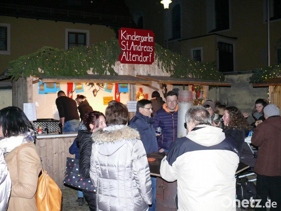 "Leise rieselnder Schnee" wäre zwar das "I-Tüpfelchen" gewesen, aber Petrus meinte es trotzdem gut und bescherte trockenes Wetter samt den passenden "Glühwein"-Temperaturen. Musikalisch lenkte am Samstagabend die Blaskapelle "Auerbachtal" auf die Advents- und Weihnachtszeit hin. Bunte Lichterketten, glitzernde Sterne und knisternde Feuerkörbe sorgten für eine heimelige Ausstrahlung und romantischen Budenzauber. Christkind Marie Kiener hieß zusammen mit Bürgermeister Georg Köppl vom Balkon des Pfarrheims herab die erwartungsvollen Gäste willkommen - und die warteten mit vielen Komplimenten auf. Den vielen fleißigen Händen aus Vereinen und Organisationen sowie den Hobbykünstlern galt der besondere Dank für die Gestaltung und das herrliche Ambiente.