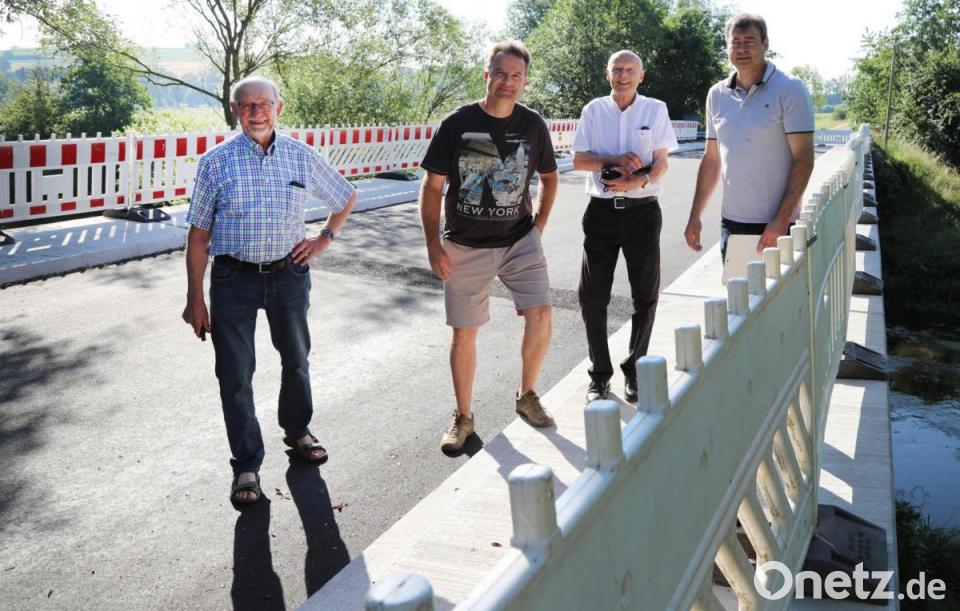 Bei den Brückenkappen war das Problem, dass die Kappen substanziell noch in gutem Zustand waren, aber zur fachgerechten Erneuerung der Abdichtung vollständig abgebrochen und erneuert werden mussten. Obwohl die Fahrbahnübergänge immer wieder mal saniert wurden, traten erneute Schäden auf. Hier wurde daher der Unterbau verbessert und ein neuer Fahrbahnübergang aufgebracht. Bei Geländern ab einer Länge von 20 Metern ist mittlerweile ein Seil zwingend vorgeschrieben. Das Geländer wurde deshalb vollständig erneuert. "Die Brücke ist nun fast wie neu, die hohe Investition hat sich mit Blick auf die Lebensdauer der Brücke gelohnt," sind sich Bürgermeister Georg Köppl, Stephan Strauß von der Firma Guggenberger, Peter Knijnenburg vom Ingenieurbüro "K+U-Plan" und Johannes Schießl von der VG Nabburg einig.