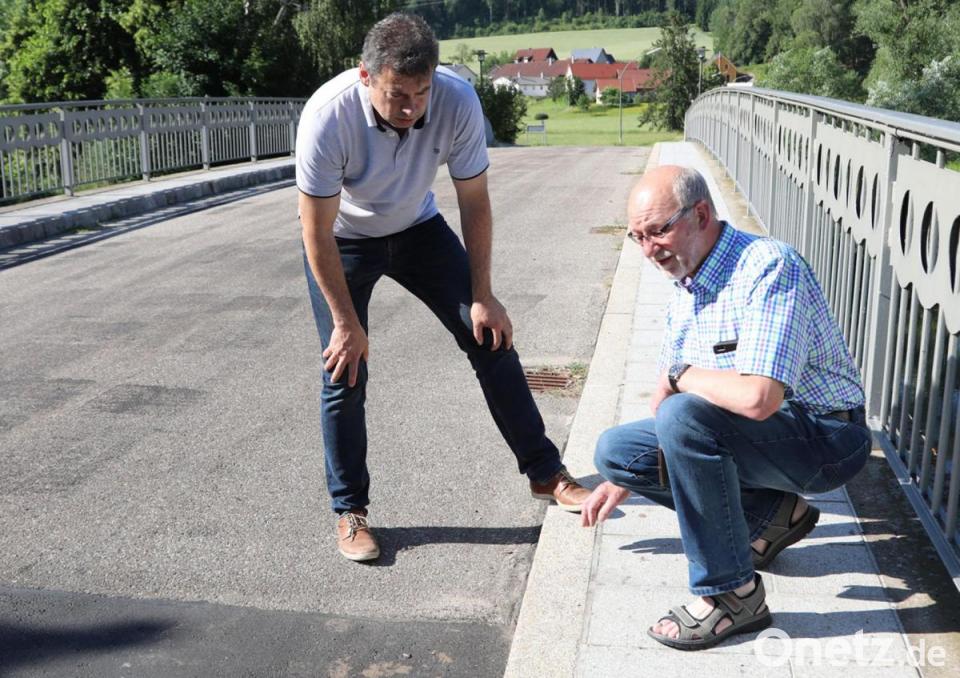 Bei der im Jahr 1977 erbauten Brücke handelt es sich um eine Ein -Feldbrücke mit einer Stützweite von 30 Metern und einer Fahrbahnbreite von sechs Metern bzw. einer Breite zwischen den Geländern von neun Metern (einschließlich beidseitigem Gehsteig). Die Brücke ist dimensioniert mit einer Tragfähigkeit von 30 Tonnen einspurig und für landwirtschaftliche Fahrzeuge bis 40 Tonnen unter Ausschluss des Begegnungsverkehrs ausreichend. Die Prüfung des Zustandes durch die Ingenieurgemeinschaft „K+U-Plan“, Wunsiedel, ergab, „dass der Zustand ausreichend, eine Instandsetzung jedoch kurz- bis mittelfristig erforderlich ist“. Die Standsicherheit sei nicht beeinträchtigt, allerdings bestünden zahlreiche Mängel in punkto Verkehrssicherheit und Dauerhaftigkeit. Eine Sanierung sei sinnvoll und auch wirtschaftlich, um die Brücke noch weitere 40 Jahre zu erhalten. (kö)