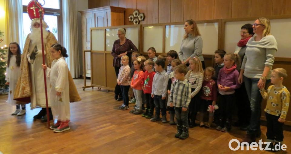 "Grüß dich Nikolaus, komm ins Haus", sangen die Kleinen des Kindergartens voller Begeisterung und der ließ auch nicht lange auf sich warten. Der heilige Mann erinnerte an das Jubiläum "900 Jahre Altendorf" und die Entstehung des wohl bekanntesten Weihnachtsliedes "Stille Nacht, heilige Nacht" vor 200 Jahren. "Kommt, wir schauen in das Licht" forderten die Mädchen und Buben auf und verteilten selbst gebastelte Geschenke.