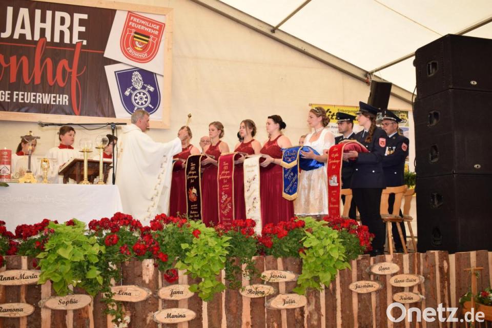 "Die Hilfsbereitschaft ist ein Kennzeichen von Kameradschaft und Zusammenhalt", richtete der Prediger den Blick auf den Schutzpatron der Feuerwehr. "Jemand sieht einen Menschen in Not und setzt alle Hebel in Bewegung, diesem zu helfen. In einer solchen Situation läuft menschliche Gemeinschaft zur Höchstform auf", spannte der Geistliche die Brücke zum Dienst in der Feuerwehr. Für die Feuerwehrleute erbat er den Segen Gottes. In den Fürbitten trugen die Festdamen der Feuerwehr Fronhof ihre Anliegen vor Gott. Zum Ende des Gottesdienstes segnete Pfarrer Hans Bauer die Fahnenbänder, welche die Erinnerung an dieses großartige Fest auch in vielen Jahren noch wachhalten sollen.