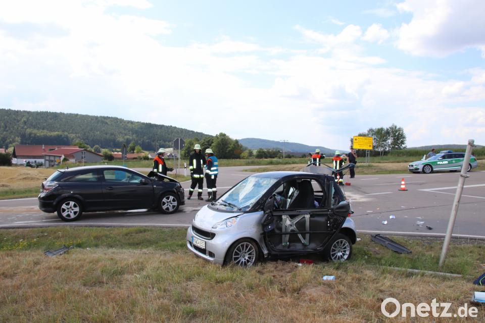 (td) Es war kurz nach mittag, als die Sirenen heulten und die Feuerwehren aus Diendorf und Unteraich zu einem Verkehrsunfall riefen, der sich bei Willhof, Gemeinde Altendorf, zugetragen hatte. Auf der großen Kreuzung von Staatsstraße und Kreisstraße waren zwei Autos ineinander gekracht. "Ich war von Nabburg aus auf der Staatsstraße unterwegs zu einem Reiterhof, um dort mit meiner Familie über das Wochenende Urlaub zu machen", sagte ein 53-jähriger Mann aus Hessen, der allein in seinem Opel Astra sass und wusste, dass er auf der Vorfahrtsstraße unterwegs ist. Plötzlich sei von rechts, von Willhof her, ein kleiner Smart auf die Kreuzung geschossen und habe den Astra vorne voll erwischt. Der Smart wurde dabei ausgehebelt und überschlug sich. In ihm sass auch nur eine Person - eine Frau mittleren Alters aus dem Landkreis Neumarkt. Sie erlitt bei der Kollision leichte Verletzungen, wegen denen sie vom Roten Kreuz ins Krankenhaus gebracht wurde.