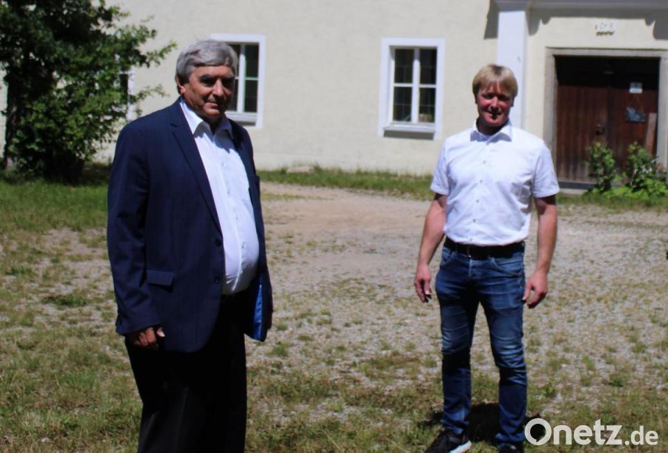 Zum Antrittsbesuch bei Altendorfs Bürgermeister Markus Schiesl brachte MdB Karl Holmeier (CSU) einen Stapel Unterlagen mit: „Ein paar Fördermöglichkeiten, was für Kommunen Sinn macht.“ Dann ging es los zum Rundgang. „Unsere Gemeindekanzlei war früher das Schulhaus, hier sind die Feuerwehr untergebracht, Kursangebote, standesamtliche Trauungen, das Amtszimmer mit zwei offenen Bürgermeistersprechstunden in der Woche und – normalerweise – einmal im Monat die Gemeinderatssitzungen“, spielte Schiesl auf die Zeit ohne amtierenden Gemeinderat und Corona-Abstand an. Die Themen auf dem Weg: Gemeindeverbindungsstraßen, Schule, Kindergarten.