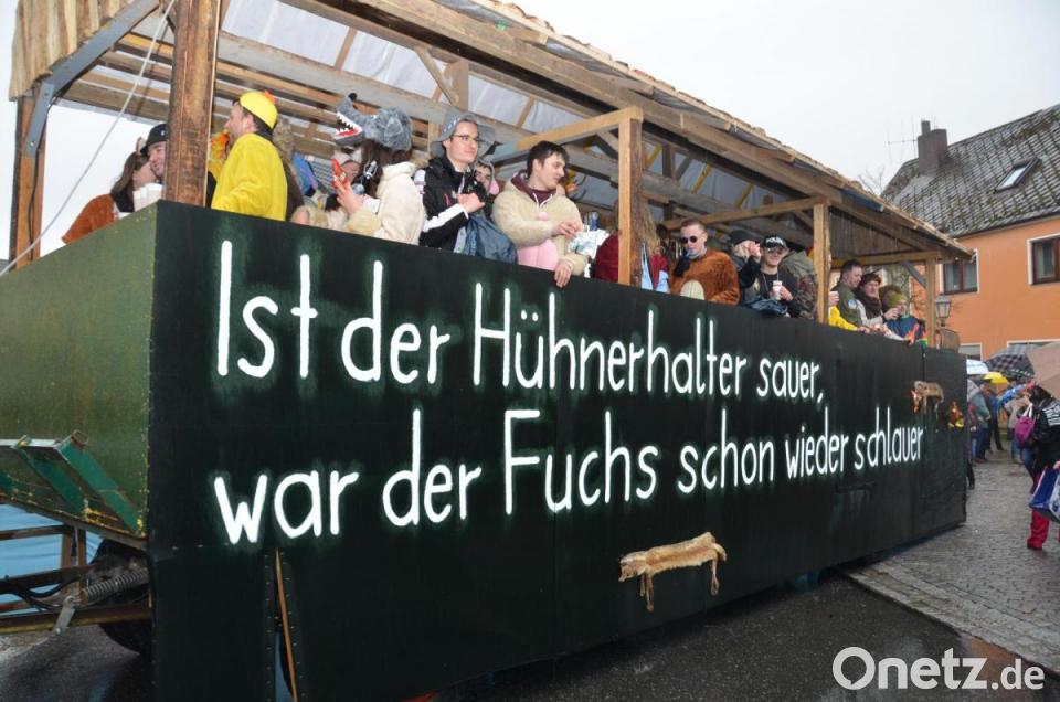 Der CSU-Ortsverband mit Bürgermeister Andreas an der Spitze stellte mit den Köpfen der Ampelregierung fest: „Ampel hin, Ampel her, in GER läuft nix mehr!“ Sie machten mit der „Regierungs (Geh) Ampel“ auf sich aufmerksam. Zur „Macht vom Elm“ schlossen sich die SV-Fußballer mit der KLJB aus dem Ortsteil Waldau zusammen. Auf ihrem Wagen war zu lesen: „Die Dörfer der Umgebung sterben dank der Politik in Vohenstrauß.“ Auf die Fuchsplage in der Region spielte der Katholische Burschenverein an: „Ist der Hühnerhalter sauer, war der Fuchs schon wieder schlauer.“ Außerdem war auf dem Wagen zu lesen: Mitglieder des Katholischen Frauenbunds machten sich das Fuchs-Thema ebenfalls zu eigen und schlüpften deswegen in Fuchs-Kostüme. Außerdem forderten sie: „Her mit meine Hehna“.
