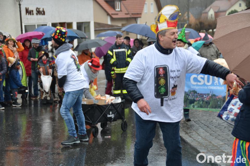 Über dem Faschingszug in Altenstadt bei Vohenstrauß hingen am Sonntagmittag dunkle Regenwolken, die sich ausgerechnet zum Start entluden. Die Narren ließen sich aber nicht beirren und feierten trotzdem begeistert. Präsident Christoph Gollwitzer, der das ganze organisiert hatte, lächelte vom Prinzenwagen herab die Regentropfen einfach weg.