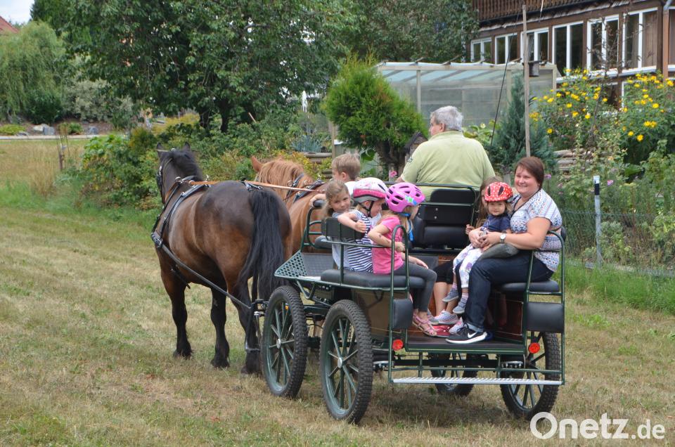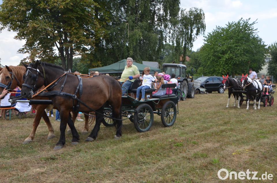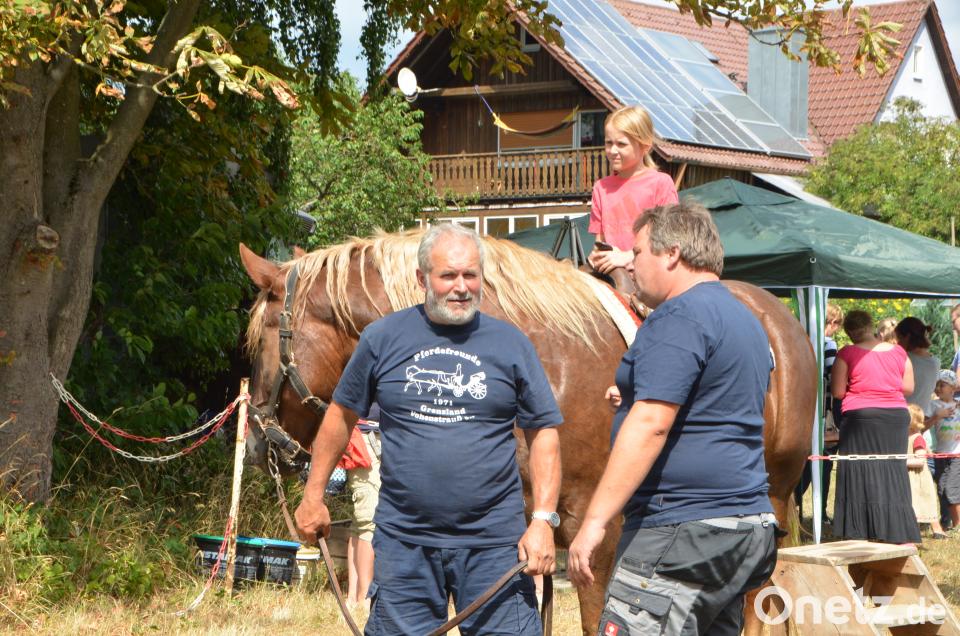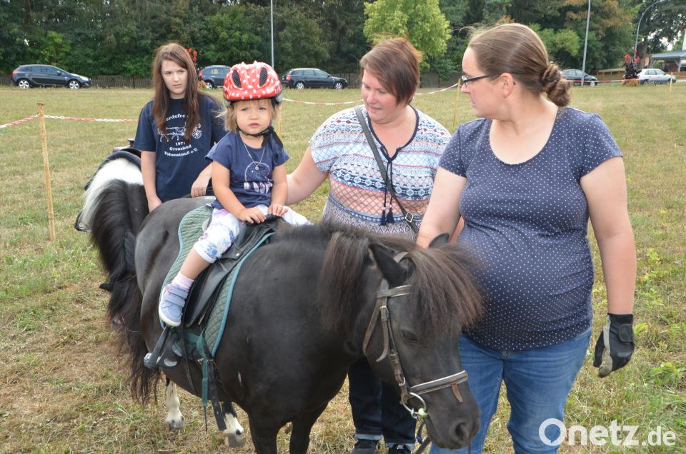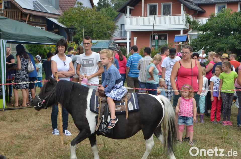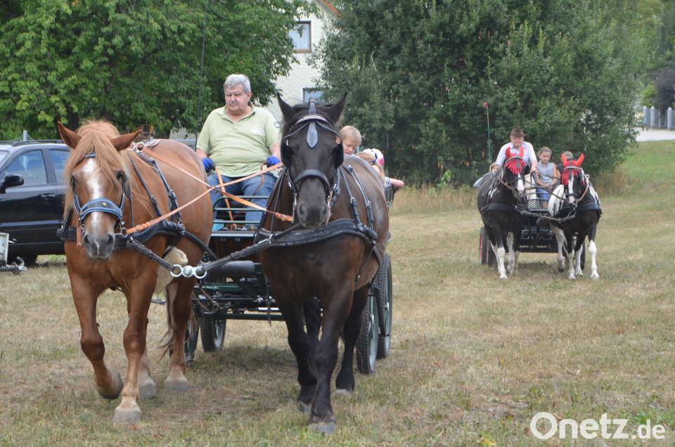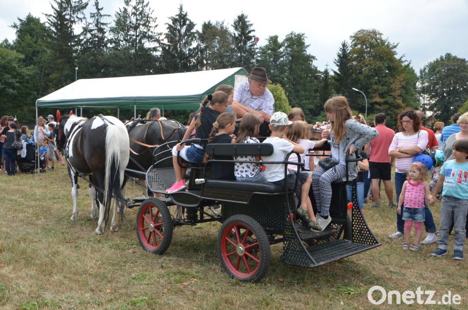 Das weitläufige Wiesengelände wurde zu einer riesigen Pferdekoppel, auf der sich die Mädchen und Buben für einen Ritt oder für eine Kutschenfahrt anstellten. Ebenso war wieder Otto Mühlhofer mit seinem Kaltblutgespann "Jackl" und "Lucki" dabei, die laut wiehernd auf sich aufmerksam machten.