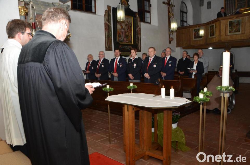 „Wir freuen uns, dass es ihnen auch wichtig ist ihr Zusammensein und ihr Gedächtnis der Verstorbenen mit einem Gottesdienst zu beginnen, mit Besinnung auf Glaube und Gebet“, versicherte Pfarrer Schinke. Die Bereitschaftsdienste des Roten Kreuzes seien so wichtig. Wie vielen Menschen wurde dadurch schon geholfen und wie viele Leben wurden gerettet? Einsatzkräfte werden heute bei ihren Hilfseinsätzen behindert, Schaulustige behindern deren Arbeit, Wege werden versperrt und es wird sogar aggressiv reagiert, ergänzte Pfarrer Schinke. „Treten wir alle gemeinsam für eine Kultur der Wertschätzung und des Mitgefühls und der Achtung gegenüber den anderen ein, so dass BRK-Helfer unversehrt ihren Dienst für unsere Gemeinschaft tun können! Lassen wir den Egoismus nicht siegen in dieser Welt“, appellierte der Pfarrer. „Einer trage des anderen Last“, war zuvor in der Lesung im Brief des Apostel Paulus an die Galater zu hören, die Herbert Putzer vortrug. So sei biblisch die Kultur der Wertschätzung beschrieben, so Pfarrer Schinke weiter. Die Selbstsucht entzieht sich möglichst der Last. Sie schüttelt sie ab und lädt sie lieber anderen auf. „Unsere Gesellschaft würde arm werden und das Klima untereinander kalt, wenn Menschen immer mehr nur an sich, an ihre Interessen, ihren Vorteil denken. Unser Miteinander lebt davon, dass Menschen sich helfen, dass sie nicht abseits stehen, wenn jemand Hilfe braucht, wenn jemand verunglückt ist, wenn durch das Alter die Kräfte abnehmen, jemand Dinge nicht mehr selbständig Dinge tun kann.“