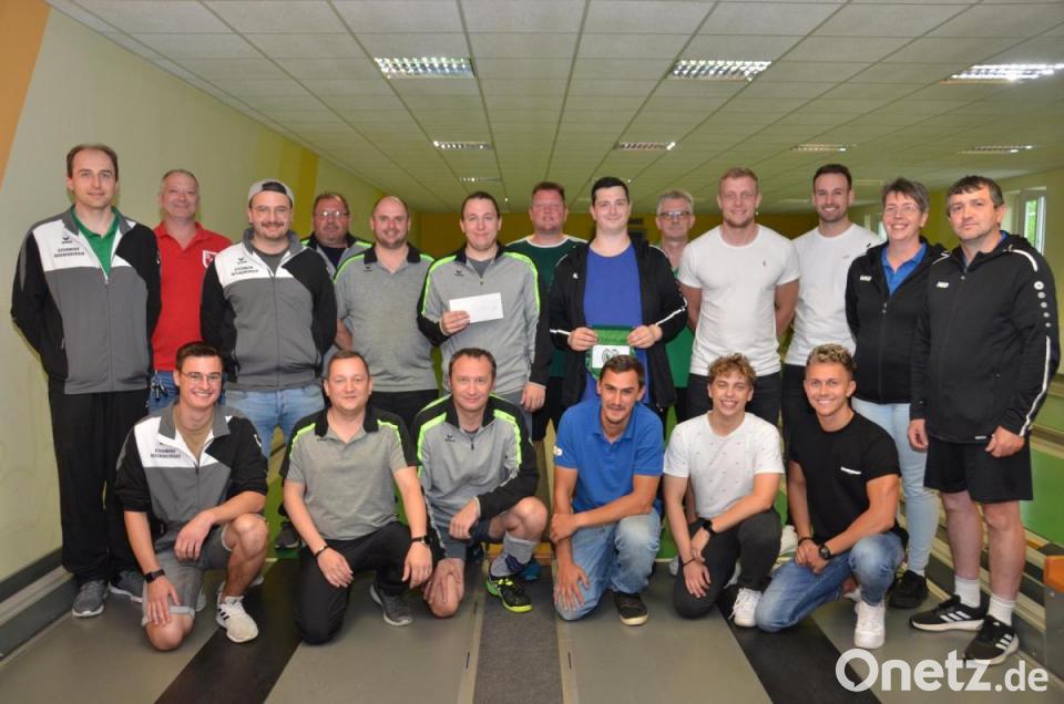 Der Kegelclub „Gut Holz“ feierte sein 50-jähriges Bestehen unter anderem auch mit einem Jubiläumsturnier, zu dem etliche Mannschaften aus der Region und darüber hinaus eingeladen wurden. Darunter auch die Kegelfreunde aus Bornheim, zu dem „Gut Holz“ seit langem eine innige Freundschaft unterhält. Bereits am Freitag wurde die Vorrunde ausgetragen, bei der „Alle Neun“ Waidhaus mit 2066 Holz und „Gut Holz“ Wernberg (2088) als Sieger hervorgingen. BSG Bornheim musste sich mit 1821 Holz und der SKC Tröbes (1943) den Konkurrenten geschlagen geben. Am Samstag lieferten sich „Rot Weiß“ Vohenstrauß, Eintracht Eslarn, der 1. SKC Floß und „Blau Weiß“ Moosbach einen aufregenden Wettbewerb, den Floß (2250) und Moosbach (2122) gewannen. Im Finale am Sonntag siegten die Flosser mit 2200 Holz. Dahinter folgte „Gut Holz“ Wernberg (2114), „Alle Neun“ Waidhaus (2073) und „Blau Weiß“ (1975). In der Siegermannschaft befand sich Stefan Hacker, der neben dem besten Gesamtergebnis von 1146 Holz, auch das beste Einzelergebnis (592) schob und deshalb als Turnierbester ausgezeichnet wurde. Auf den zweiten Platz kam Philipp Grötsch (Moosbach, 1135). Dritter wurde Robert Rosenkranz (Floß, 1112). Im Siegerteam kämpften außer Rosenkranz und Hacker auch noch Andreas Stahl und Horst Dilling um die Punkte.