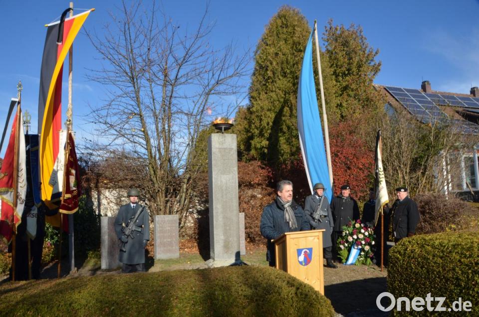 "Begehen wir diesen Volkstrauertag im Bewusstsein, dass die Toten uns mahnen wollen, achtsam zu sein und sich stets für unsere demokratischen Werte einzusetzen." Das sei die Botschaft für uns alle am Volkstrauertag, versicherte Wutzlhofer. In Altenstadt begleitete die Jugendkapelle Roggenstein die Feierstunde. An allen Denkmalen legte die Stadt Kränze nieder. Soldaten der 4. Kompanie des Panzergrenadierbataillons 122 aus Oberviechtach hielten die Ehrenwache.