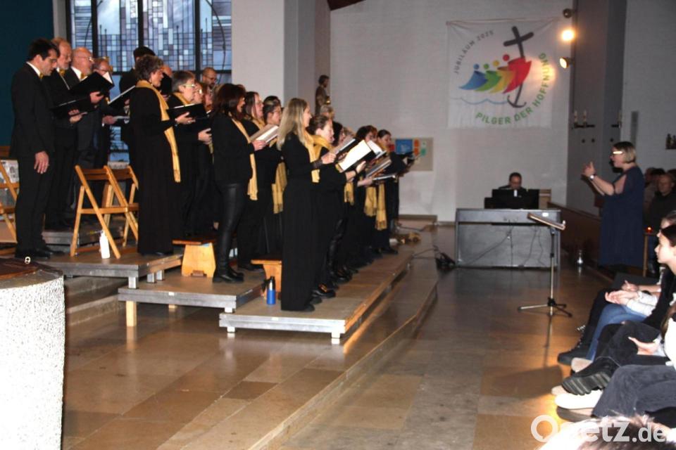 Nachdem Pfarrer Kopp alle Mitwirkenden und die Besucher begrüßt hatte, begann das Adventssingen mit ruhigen Stücken. Alle wurden eingestimmt zum „Schweigen und Hören“, um sich für das Wunder der kommenden Weihnacht bereitzumachen. So fällt „Leise, leise in der Nacht das Licht der Sterne“ auf dem Weg nach Bethlehem. Wieder ein besonderes Highlight: Der Chor wurde von den Engelsstimmen der Chorkinder und -enkel unterstützt bei den Liedern „Seht am Himmel steht ein Stern“, den „Engels Carol“ und „Der Stern zu Bethlehem“. Nachdem dem Jesuskind mit „Schlaf wohl, du Himmelsknabe du“ ein Wiegenlied gesungen wurde, endete das Adventssingen mit der „Heiligen Nacht“.