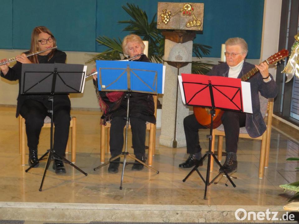 Umrahmt wurde das Adventssingen mit ruhigen und stimmungsvollen instrumentalen Musikstücken der Neustädter Klarinettenmuse und vom Trio Cantabile. Das Trio Cantabile mit Regina Schmid (Gitarre), Gabi Fröhlich und Doris Bär (beide Querflöte) zeigte sich mit einfühlsamen Klängen mit den Titeln "Andante", "Allegretto" und einem "Deutschen Tanz" von Wolfgang Amadeus Mozart. Die Neustädter Klarinettenmuse mit Maria Bergmann, Andrea Hildebrand, Reiner Völkl und Karl Wildenauer (alle Klarinette) sowie Paul Dütsch-Glokpon (Bassposaune) spielte innig die Pastorale "Auf, ihr Hirten". Ferner steuerten die Neustädter Weisenbläser mit Christine Fischer, Max Gleißner, Ben Kippes, Max Striegl (alle Flügelhorn), Maria Wildenauer (Tenorhorn) und Paul Dütsch-Glokpon (Posaune) mit dem Stück "Kummt schöi hoimle die Nacht" ein weiteres musikalisches Schmankerl bei. Gemeinsam zelebrierten beide Ensembles das "Leise sinkt der Abend nieder".