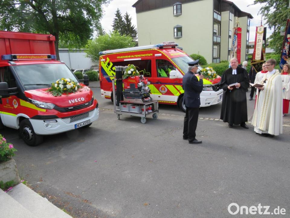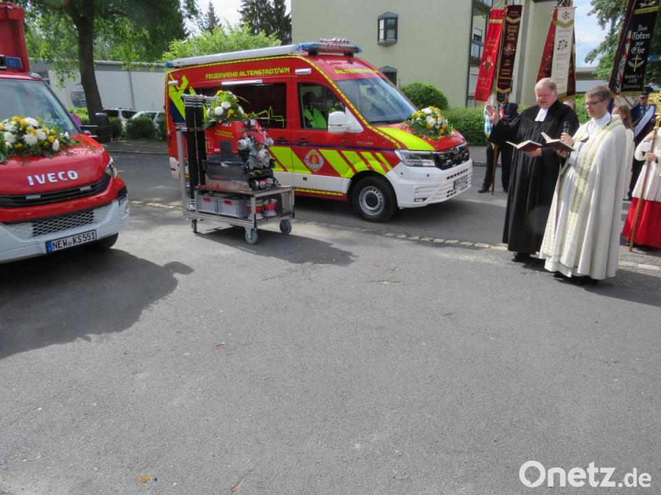Versehen mit dem kirchlichen Segen gehen die neuen Fahrzeuge und Ausrüstungsgegenstände der Altenstädter Feuerwehr zukünftig in den Einsatz. Pfarrer Thomas Kopp und Pfarrer Ulrich Gruber sprachen an Christi Himmelfahrt die Segensgebete.