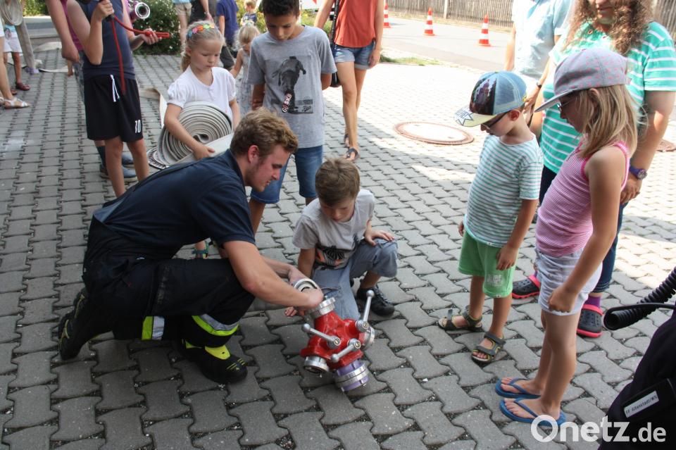 (adj) Obwohl die Feuerwehr hitzeerprobt ist, musste sie feststellen, dass es gegen die hochsommerlichen Temperaturen kein Mittel gibt. So konnte Kommandant Gottfried Amschl nur 15 Kinder und damit nur halb so viele wie 2017 mit ihren Eltern zum ersten Ferienprogramm des Jahres begrüßen.