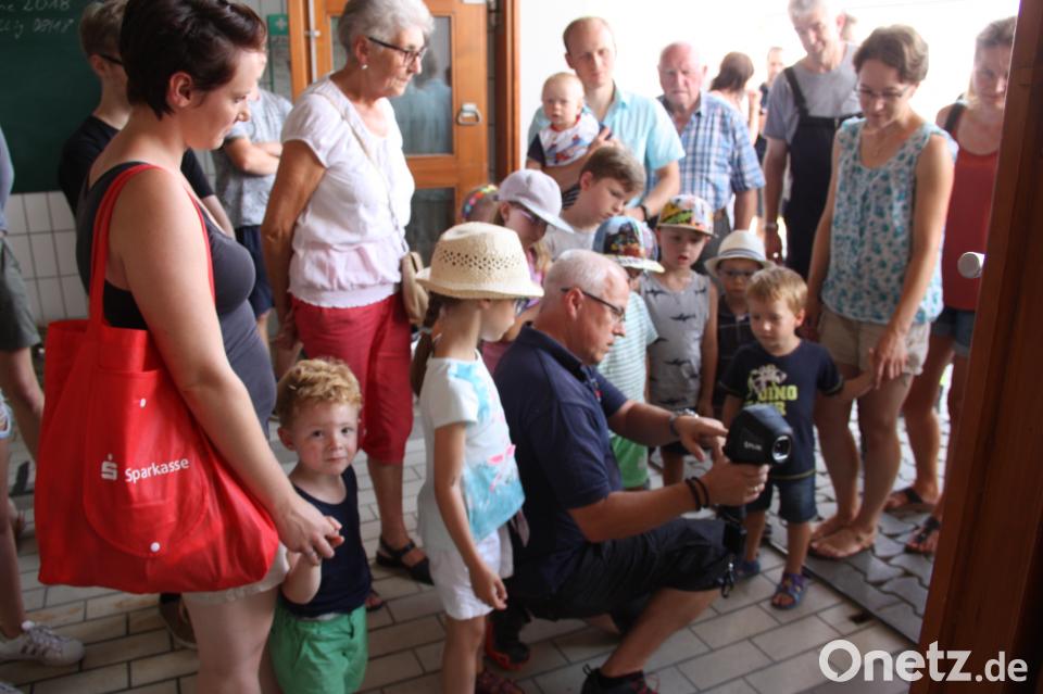 Umso erfreulicher war es, dass das Interesse an seinen Erklärungen nicht nur bei den Kids sehr groß war. Amschl verwies darauf, dass aktuell bei der großen Hitze die 2600 Liter Wasser, die in den beiden Löschfahrzeugen ständig vorhanden sind, sehr wichtig seien. Damit könnten kleinere Brände auf Wiesen und Wäldern schnell gelöscht werden. Weiter erklärte der Kommandant die Ausrüstung und wozu die einzelnen Geräte gebraucht werden. Gespannt verfolgten Kinder und Erwachsene, wie die Reaktion bei einem Fettbrand, den man mit Wasser löscht, ausfällt. Beeindruckend war die hohe Stichflamme bei der Berührung mit Wasser. So haben alle gelernt, "Deckel drauf und den Fettbrand ersticken". Beim Blick in die Wärmebildkamera sahen die Buben und Mädchen die hohen Temperaturen. Bei elektrischen Bränden kommt ein CO2-Löscher zum Einsatz. Dabei ist in geschlossenen Räumen besondere Vorsicht geboten, da dabei der Sauerstoff im Raum verbraucht wird. Atemschutzträger Joseph Linder war in voller Montur ein Hingucker. Großen Spaß hatten die Mädchen und Buben beim Aufbau einer Schlauchleitung, wobei jeder mal an die Spritze durfte.