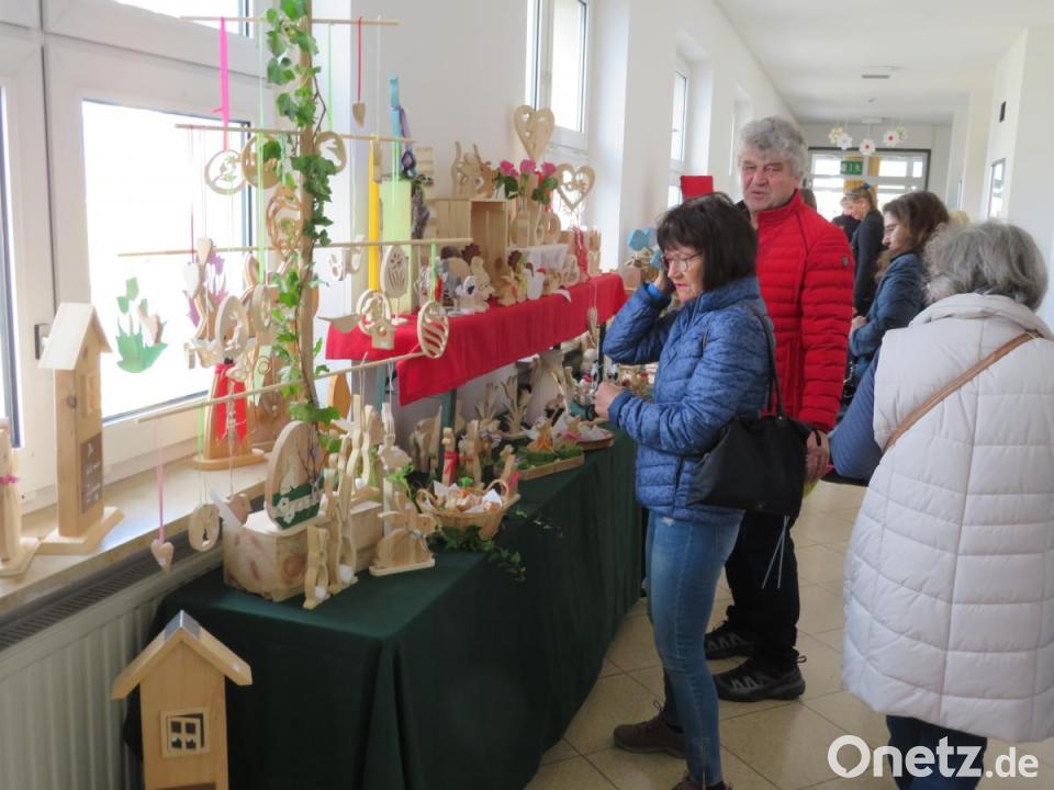 Stand an Stand reihte sich in den Gängen der Grundschule bis in die Pausenhalle. Verkauft wurde alles, das zur Frühlings- und Sommerzeit passt. Holzarbeiten, Gefilztes, Genähtes, Gebasteltes und Getöpfertes erfreute die Herzen der Kunden und Kundinnen. Bei den angebotenen Waren merkte man deutlich, dass das Osterfest vor der Tür steht. Kunstvoll gefertigte Osterdekoration aus allen möglichen Materialien sprangen den Besuchern richtig ins Auge. Beim Bummeln durch die Gänge wechselten viele der kunstvollen Exponate den Besitzer.