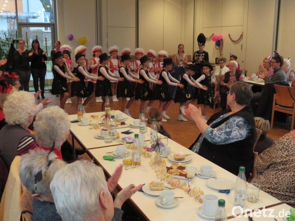 Stimmungsmacher Klaus spielte auf seinem Akkordeon Faschingsmusik und Schlager. Im Frage- und Antwortspiel mussten die Gäste die Lieder erraten. Auf die Fragen von Pfarrer Thomas Peter Kopp antwortete der Entertainer musikalisch. Kaffee, Krapfen, Kuchen und andere Getränke wurden fürs leibliche Wohl gereicht. Die Jugendgarde, das Kinderprinzenpaar und das Kinderfunkenmariechen des Vereins Neustädter Faschingszug verzauberte die Senioren mit ihren Tänzen. Dafür wurden sie mit viel Applaus belohnt. Für den Heimweg stand nach den fröhlichen Stunden auch ein Fahrdienst zur Verfügung.