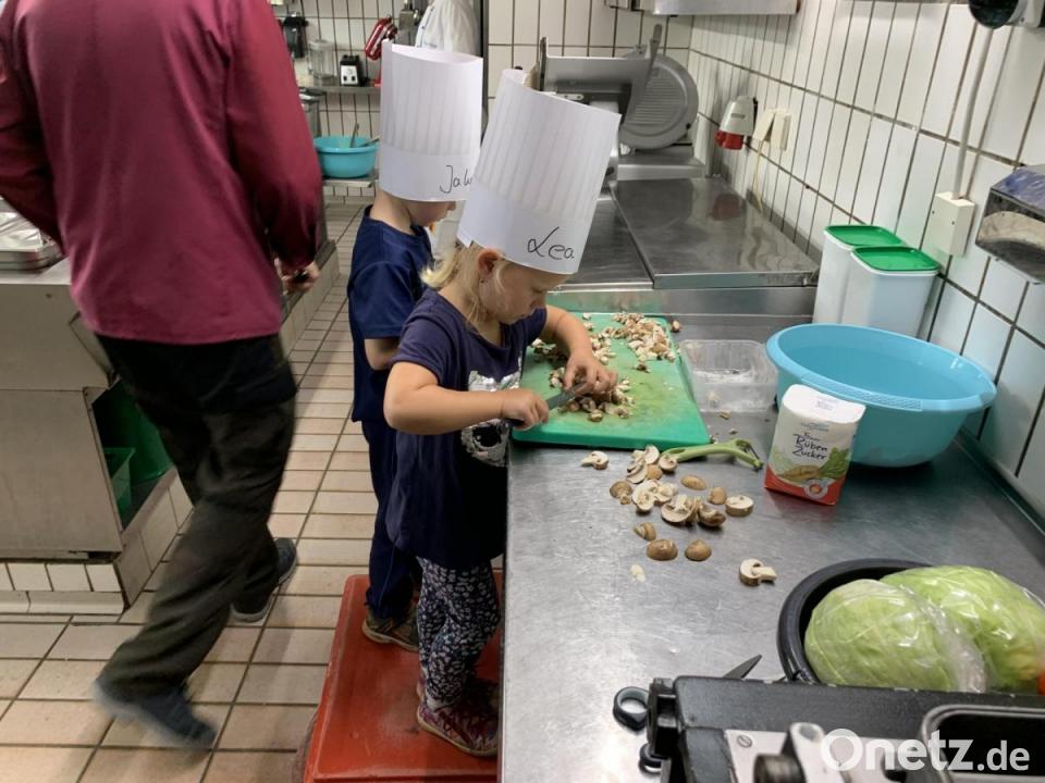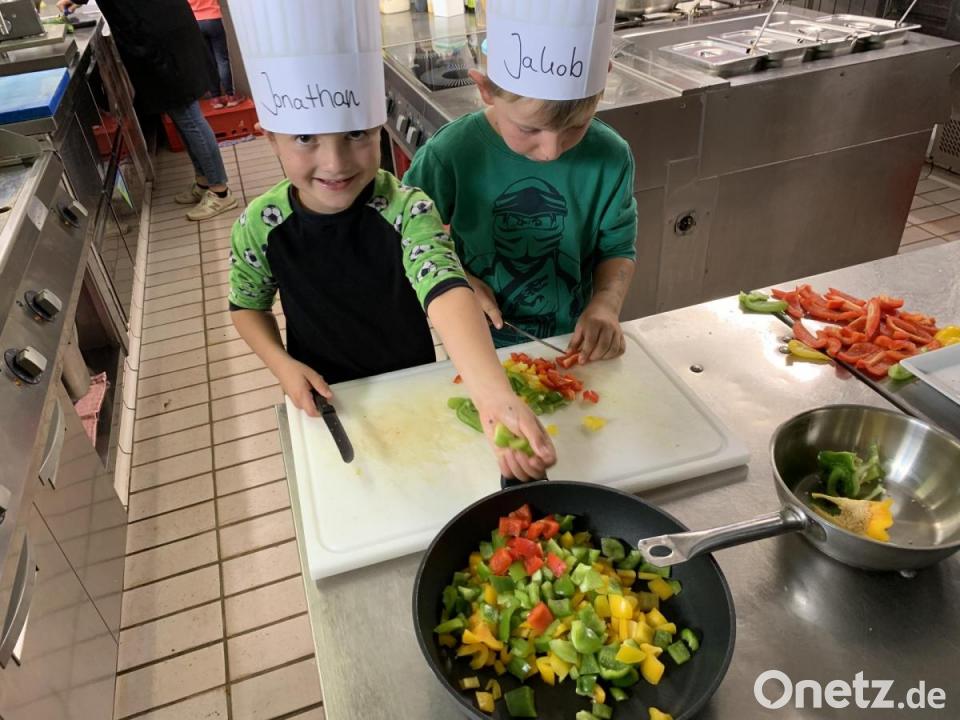 Während sich die eine Hälfte der Mädchen und Buben auf den Kegelbahnen spannende Spiele lieferte, durften die anderen Kinder mit Wirt Jürgen Füssl kochen. Schnipseln und Schneiden von Äpfeln, Paprika, Pilzen und vielem anderen Obst für den Obstsalat war für die Kinder eine Herausforderung. Auch das Herrichten des Pfannkuchenteiges gelang ihnen unter Anleitung sehr gut.