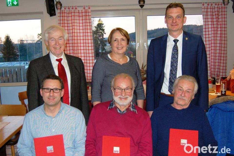 „Langjährige aktive Mitglieder sind das Fundament unseres Ortsverbandes“, meinte Konrad Merk bei der Mitgliederehrung. Er zeichnete Roswitha Hagl, Werner Schumacher und Reinhard Simmerl für 35-jährige sowie Christian Schramek für 15-jährige Treue zu den Genossen mit Urkunden aus. Auch Bürgermeister Ernst Schicketanz gratulierte den Jubilaren.