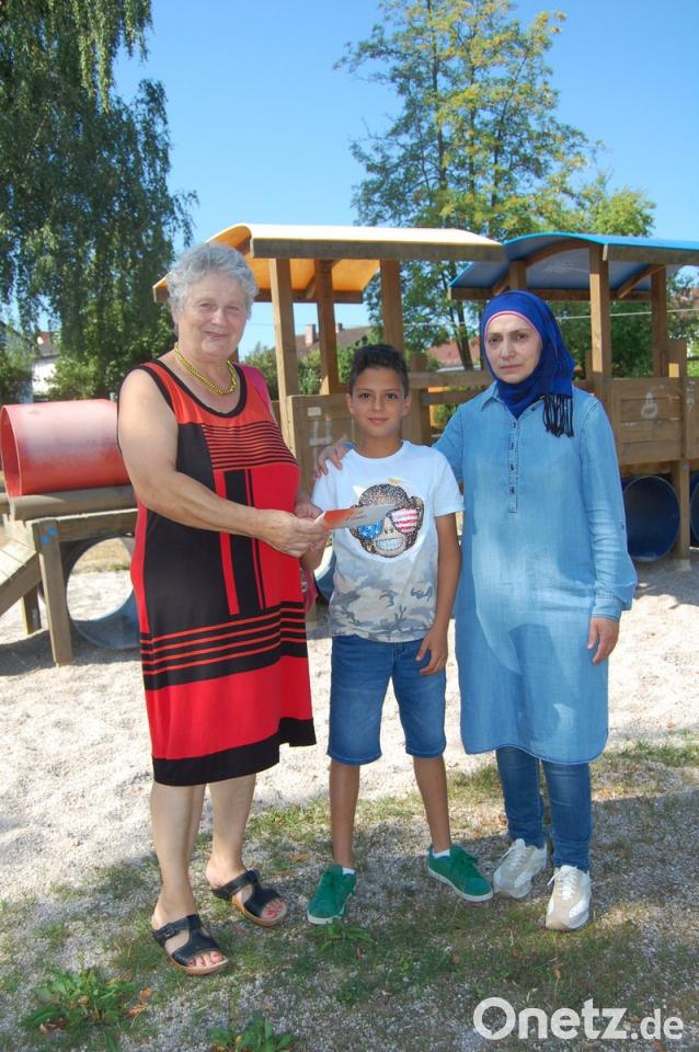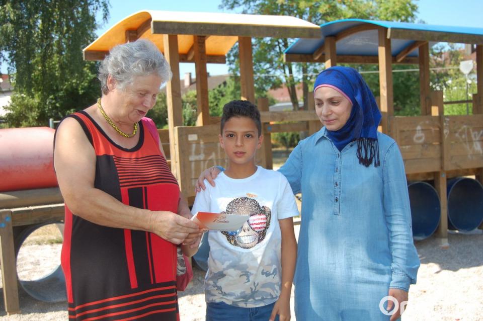 (sm) Vorsitzende Elisabeth Weiß veranstaltete dabei ein Luftballon-Wettfliegen. Rund 50 Ballons gingen an den Start. Von den daran hängenden Karten kam leider nur eine einzige zurück. Sie wurde bei Neualbenreuth gefunden. Darauf stand die Adresse von Ebrahim Mardaa. Die Freude bei dem Zehnjährigen Syrer war riesengroß, als die FU-Vorsitzende dem Sieger des Luftballonwettbewerbes einen Eisdielen-Gutschein überreichte. Ebrahim war dazu mit seiner Tante zur Preisverleihung auf den Spielplatz gekommen war. Er lebt seit rund drei Jahren in Deutschland, seit etwa einem halben Jahr davon in Altenstadt/WN. Vorher war er zirka 2,5 Jahre in Windischeschenbach.