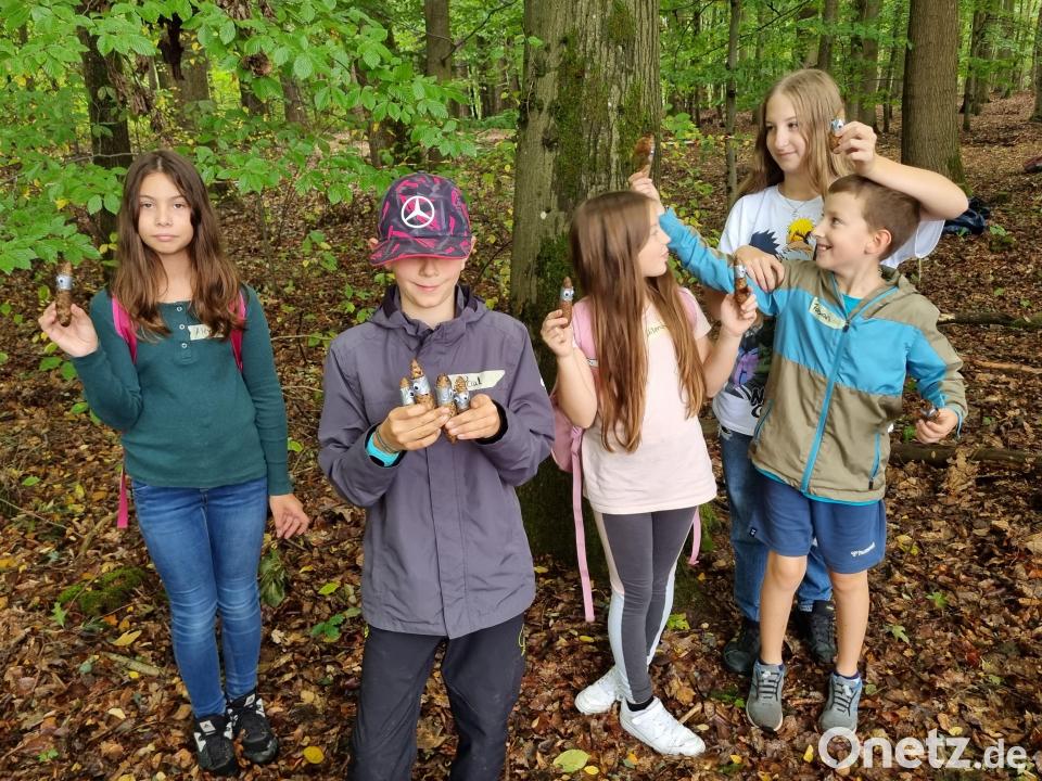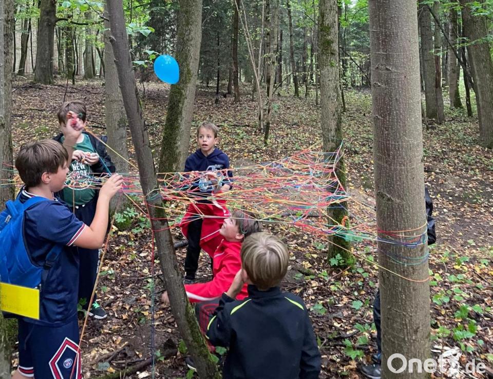 In drei Gruppen eingeteilt, mussten die Kinder an 10 verschiedenen Stationen im Gemeindewald, altersgemäß abgestimmte Herausforderungen erledigen. Die Stationen hatten pädagogische uns spielerische Hintergründe, in denen es ich immer um den Wald drehte. Dabei mussten die Kinder Gerüche erkennen, darunter Cola-Kraut, Zitronenmelisse, Minze und weitere, Gegenstände aus dem Wald ertasten, wie Baumrinde, Äste, Eicheln, Blätter, Federn, den Umfang eines Baumes nur anhand der eigenen Körpergröße bestimmen, mit Augen markierte Tannenzapfen finden, Gewichte einschätzen und beim Wald-Memo Gegenstände selbst im Wald finden. Viel Spass gab es beim Zapfenzielwerfen, Ballonspringen und beim Waldquiz mit Fragen rund um den Wald. Eine Herausforderung war das magische Spinnennetz: Mit Hilfe von Wolle mussten die Kinder ein Spinnennetz zwischen Bäumen spannen, sodass einen Luftballon nicht hindurchfallen kann.