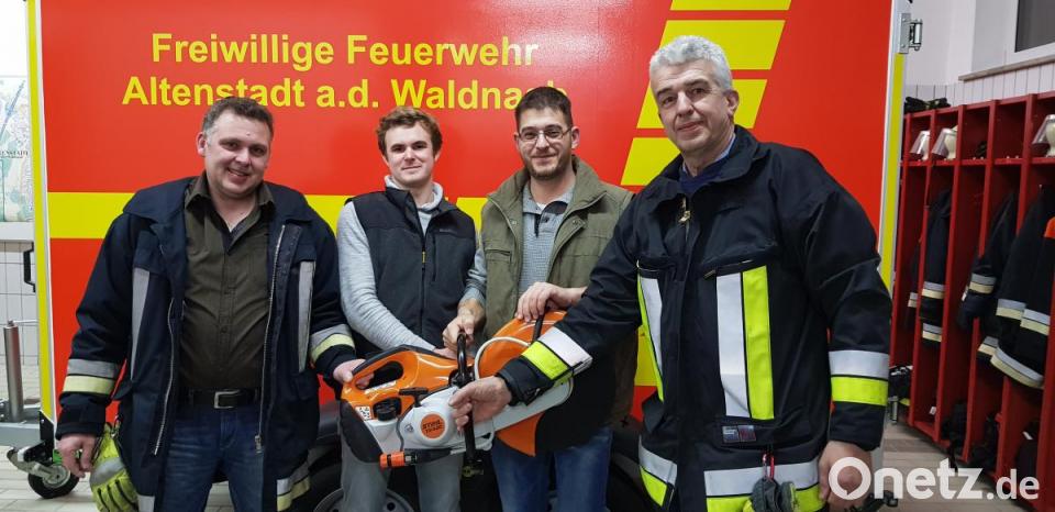 Die Feuerwehr Altenstadt kann ein neues Gerät in ihre Ausrüstung übernehmen. Im Gerätehaus überreichte Helmut Weiß einen hochwertigen Motor-Trennschleifer im Wert von über 1000 Euro. Das Gerät ergänzt die umfangreiche Ausrüstung der Feuerwehr für technische Hilfeleistungseinsätze und wird zum Beispiel beim Durchtrennen von Leitplanken zum Einsatz kommen. Der Trennschleifer ist ab sofort einsatzbereit und ist an Bord des Mittleren Löschfahrzeugs (MLF). Die Kommandanten Gottfried Amschl und Markus Lindner dankten Helmut Weiß für die großzügige Spende.