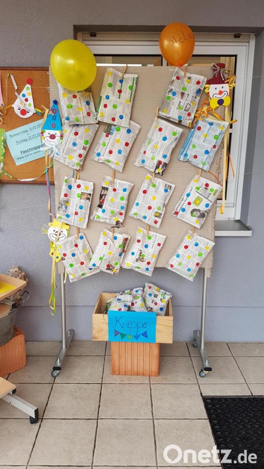 Die "verrückte Faschingswoche" musste in der Kita Arche Noah ausfallen. Die Erzieherinnen überlegten sich stattdessen eine "verrückte Woche" für zu Hause. Es wurden Tüten mit "verrücktem" Inhalt für die Kinder zusammengestellt, die zur Abholung paratstanden. Danach gab es jeden Tag per Kita-App Vorschläge, passend zum Tüteninhalt wie Pyjamaparty, Schmink- und Tattoo-Tag, Fotoboxtag, Basteltag und zum Abschluss Verkleidungstag mit Party. Zudem gab es für jedes Kind einen Corona-Durchhalteorden. Die Kinder in der Notbetreuung erlebten diese Aktionen in der Kita.