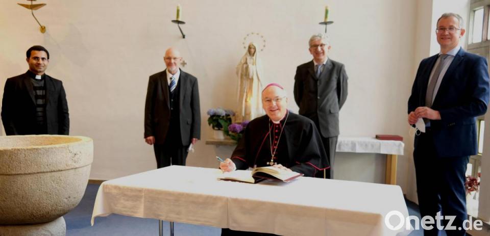 Bürgermeister Franz Grabinger bedankte sich bei Rudolf Voderholzer für den Besuch und ließ ihn als ersten Bischof überhaupt ins Goldene Buch der Gemeinde eintragen. Der Oberhirte gratulierte in seinem Bucheintrag zum Doppeljubiläum und bedankte sich "für das gute Miteinander von kirchlicher und politischer Gemeinde".